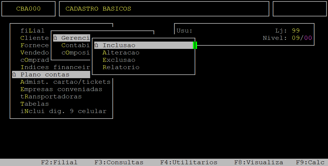 | Localização: | Cadastros Basicos / Plano de Contas / Gerencial / Inclusao |