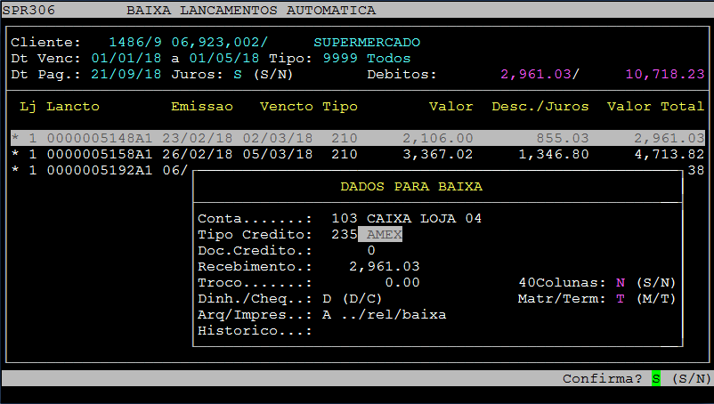 Pressione a tecla F7: Baixa para efetuar a baixa dos lançamentos e em seguida, confirme a baixa.