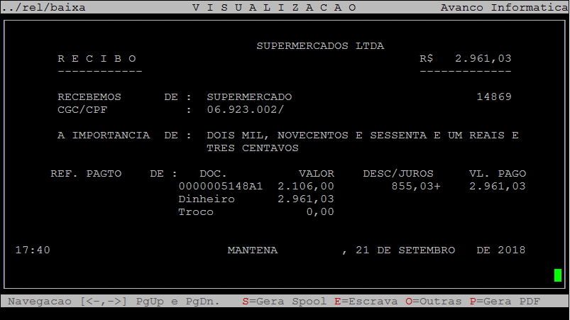 Localização: | Adm Financeira / Contas a Receber / Lançamentos / Baixar Lançamentos Pagos / por Lote / por Browser Seleção |