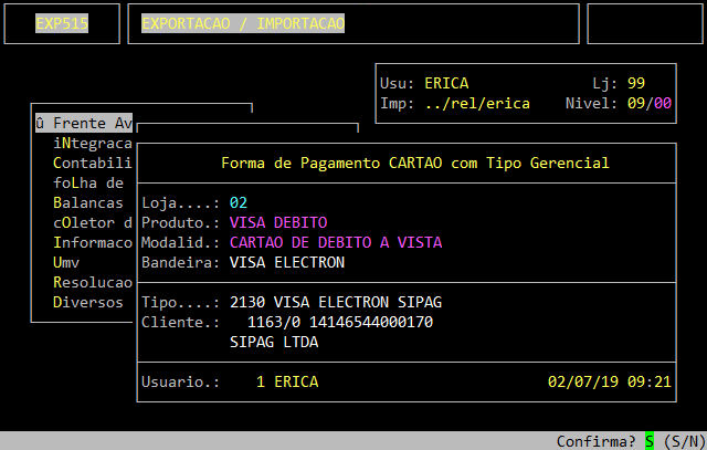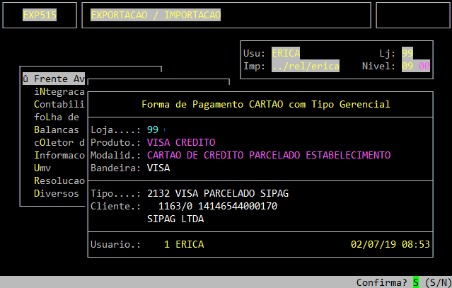 | Rotina: | Forma de Pagamento Cartão com Tipo Gerencial |