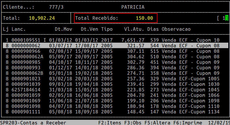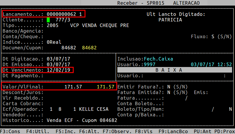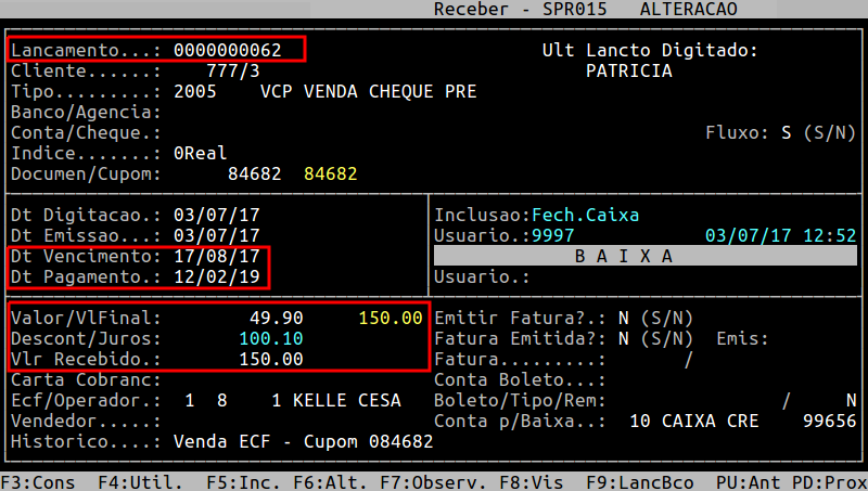 Rotina: | Receber - Alteração |