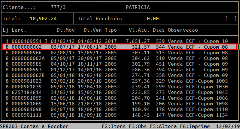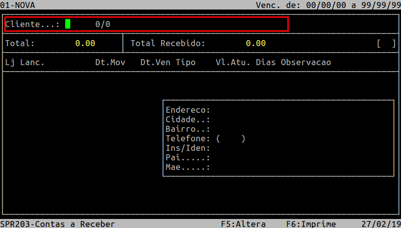 Localização: | Administracao Financeira / Contas a Receber / Lancamentos / Manutencao / Alteracao / Individual |