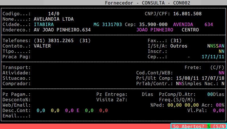 O sistema exibirá a mensagem So Abertos?, no qual deverá informar S para visualizar apenas os laçamentos que não foram pagos.
