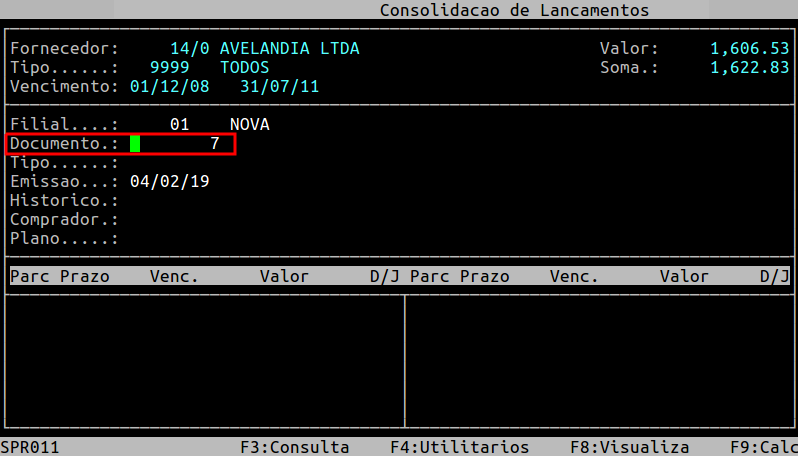 Neste documento, será utilizado os dois lançamentos em destaque (0000000001 e o 0000000002) para realizar a consolidação. Observe que o somatório deles é de 1622,83.