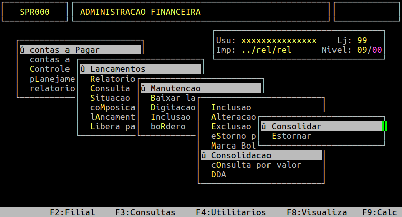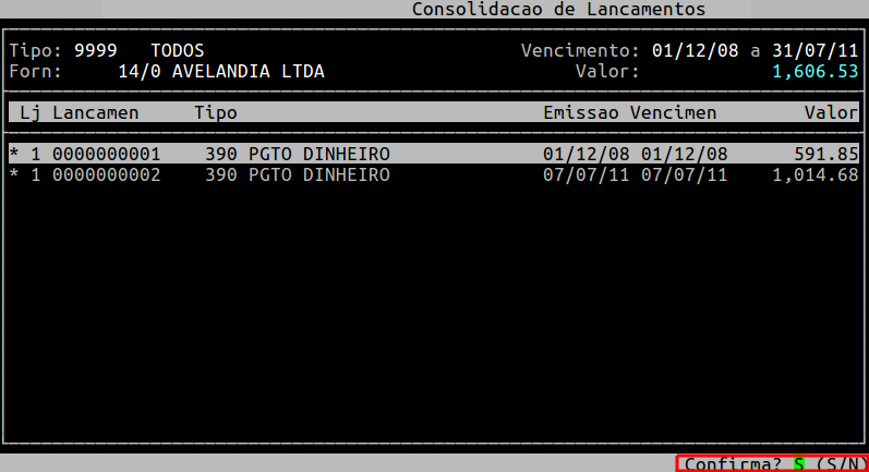 Localização: | Administracao Financeira / Contas a Pagar / Lancamentos / Manutencao / Consolidacao / Consolidar |
