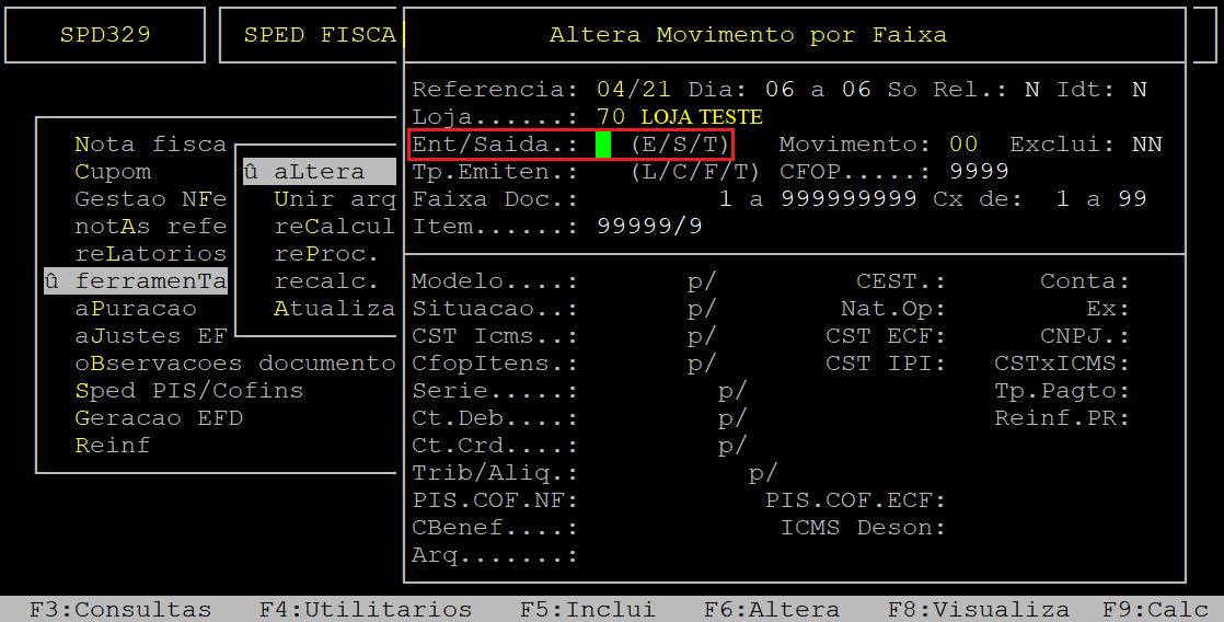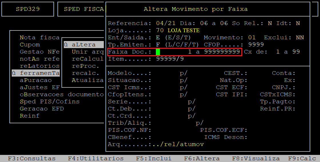2.2 - Consultando uma Nota Fiscal no Movimento do Sped Após Executar a Rotina Altera por Faixa