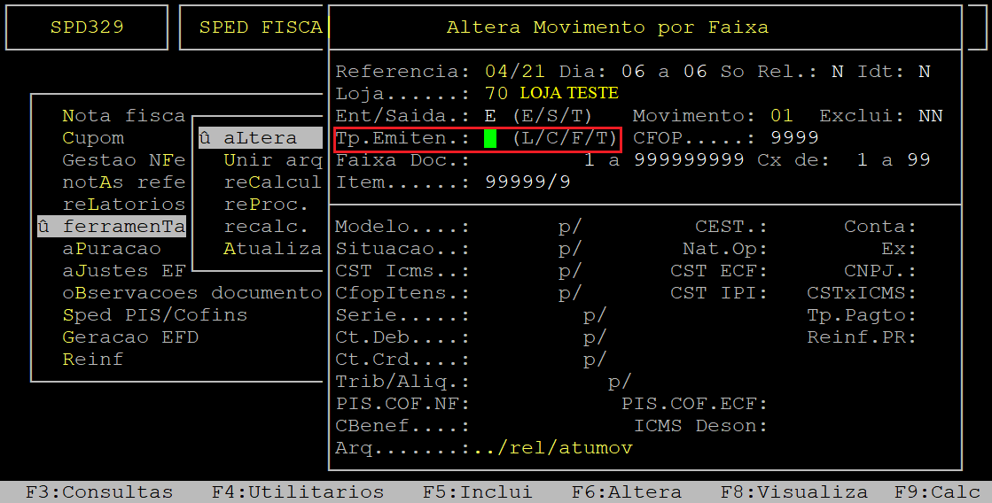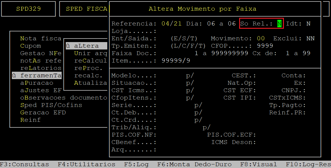 No campo So Rel, informe a letra S se desejar visualizar a alteração apenas em relatório, ou N para executar a alteração direto na rotina de movimento do Sped.