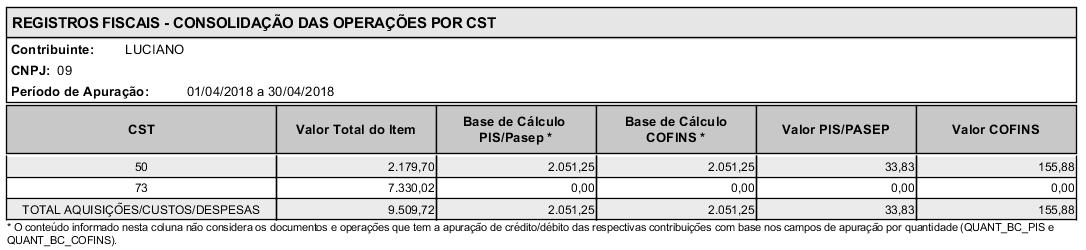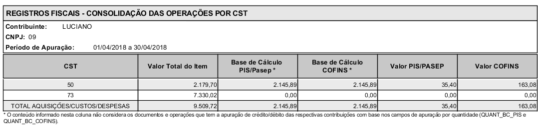 | Localização: | SPED - EFD / SPED PIS - COFINS / Relatório PIS - COFINS |