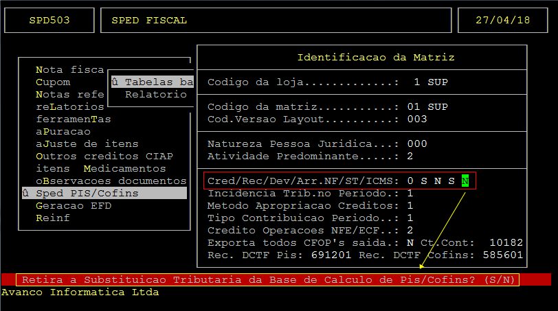 | Localização: | SPED - EFD / SPED PIS - COFINS / Tabelas Básicas / Identificação da Matriz |