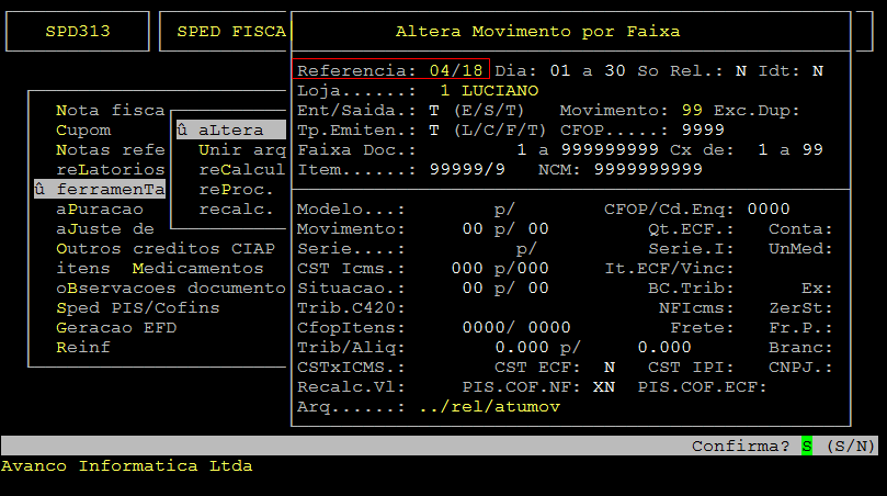 | Localização: | SPED - EFD / Ferramentas / Altera por Faixa |
