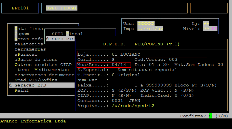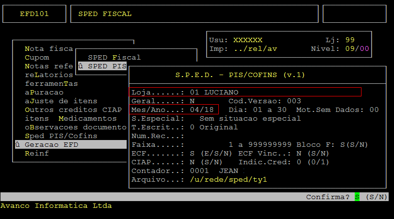 SPED - EFD / Geração SPED / SPED PIS - COFINS |