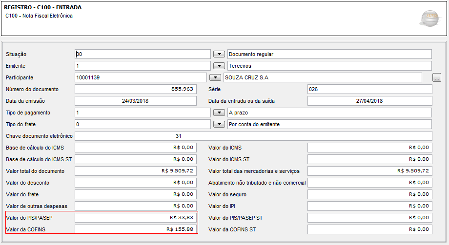 | Valor do PIS/PASEP: | R$ 33,83 |