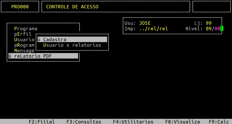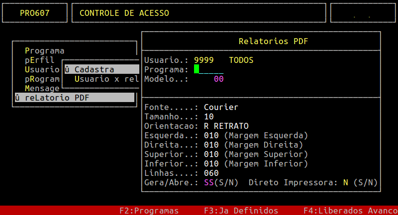 OBSERVAÇÃO: A função F4 deve ser dada na tela do Menu Principal. |