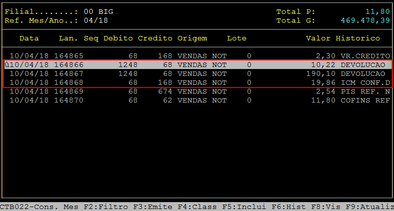 | Localização: | Movimentacao / Consulta / Lancamento |