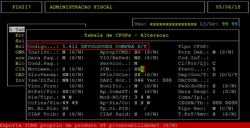 | Localização: | Administracao Fiscal / Tabelas / Fiscais-Codigos / Alteracao |