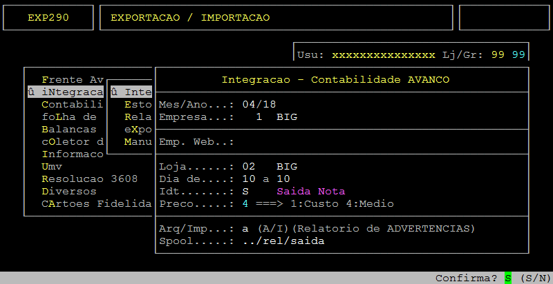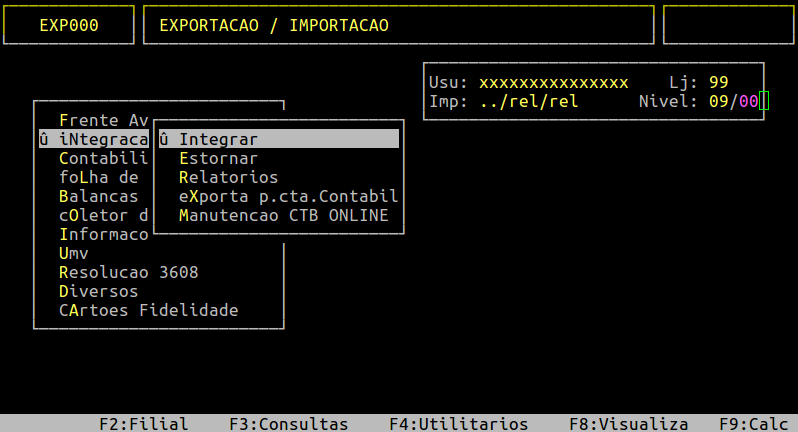| Localização: | Exportar - Importar Arquivo / Integracao Contabil / Integrar |
