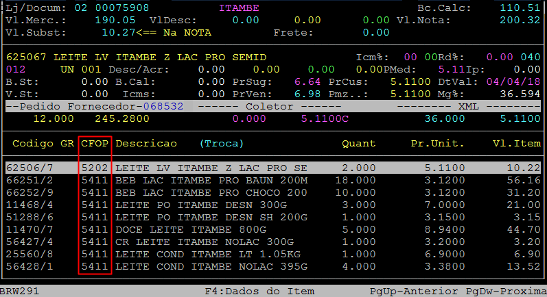 No exemplo abaixo, ao somar os valores da nota fiscal no item tem o seguinte resultado:
