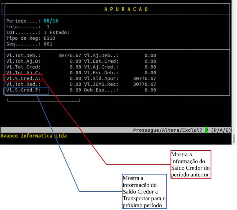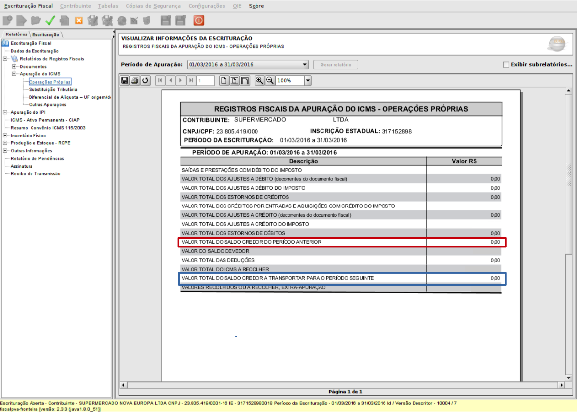 Abaixo, segue o caminho para verificar o Saldo Credor no período anterior ou a transportar.