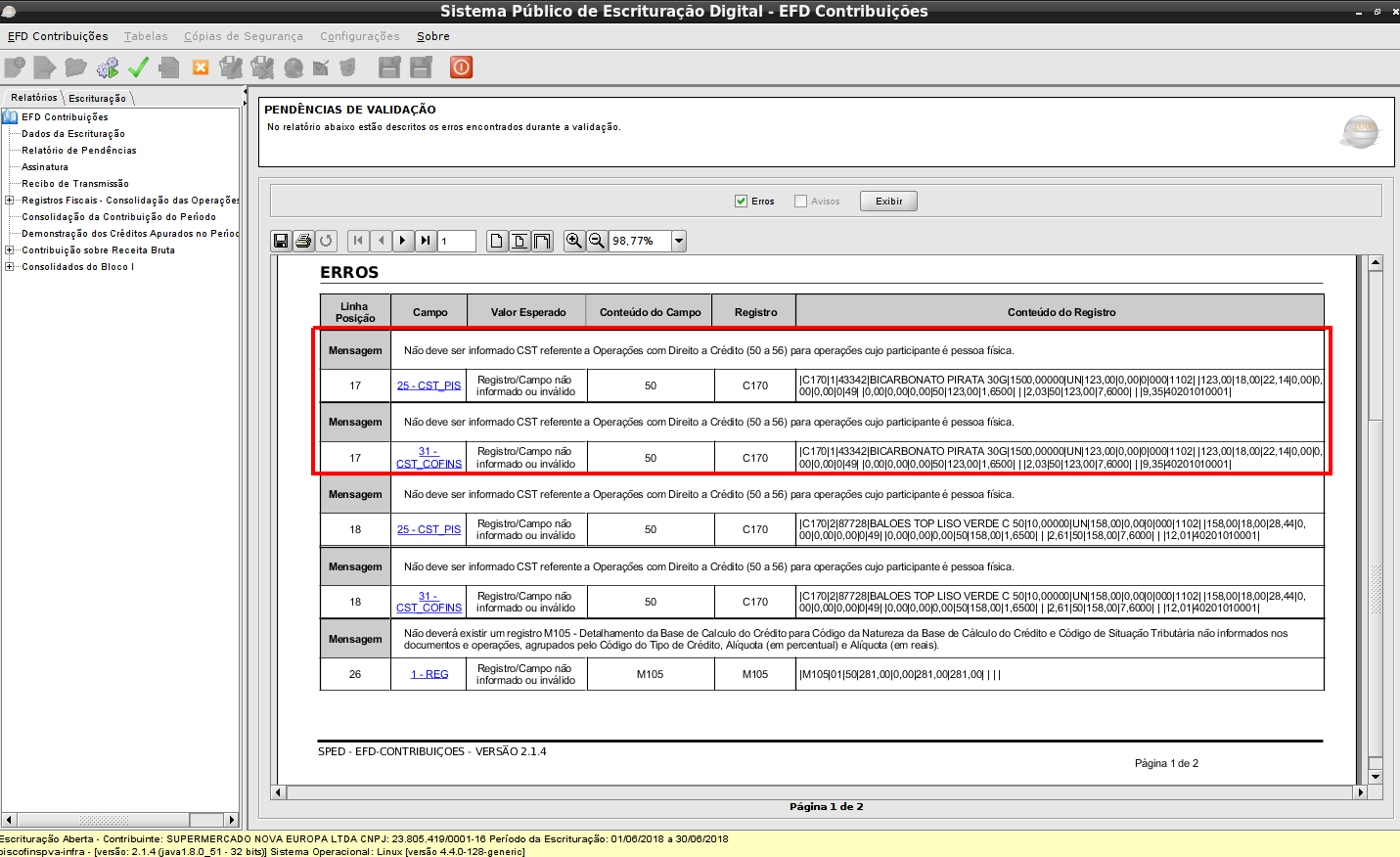 1 - Visualizando o Erro no Validador do Sped Contribuições