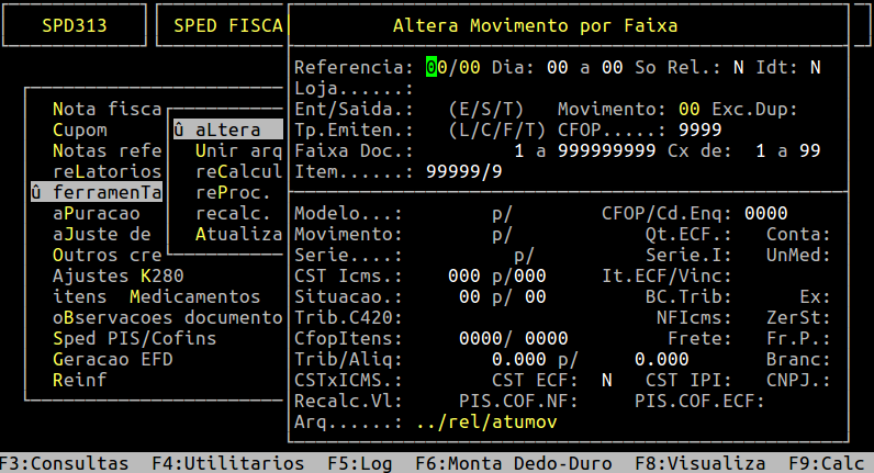 | Localização: | Sped Efd / Ferramentas / Altera p/ Faixa |