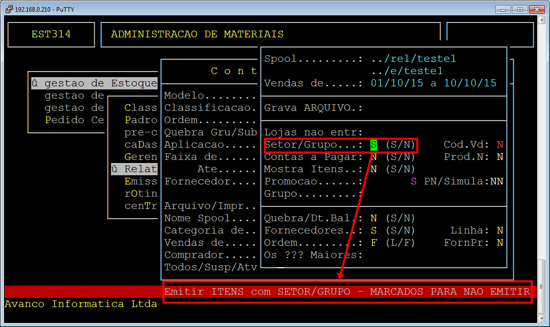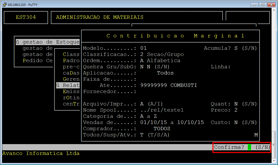 O próximo passo é emitir o relatório de Contribuição Marginal setando S no parâmetro Setor/Grupo.