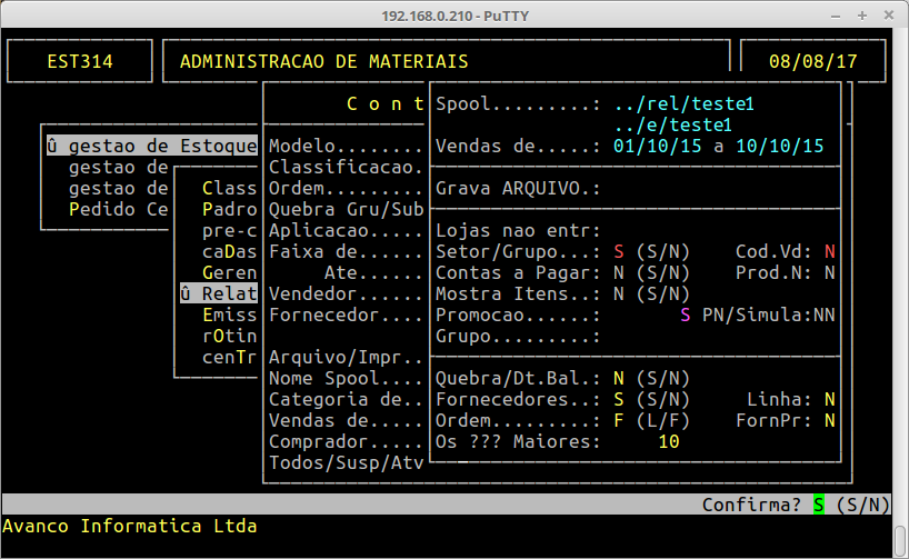 Ao término, pressiona a tecla ENTER até confirmar a emissão do relatório.