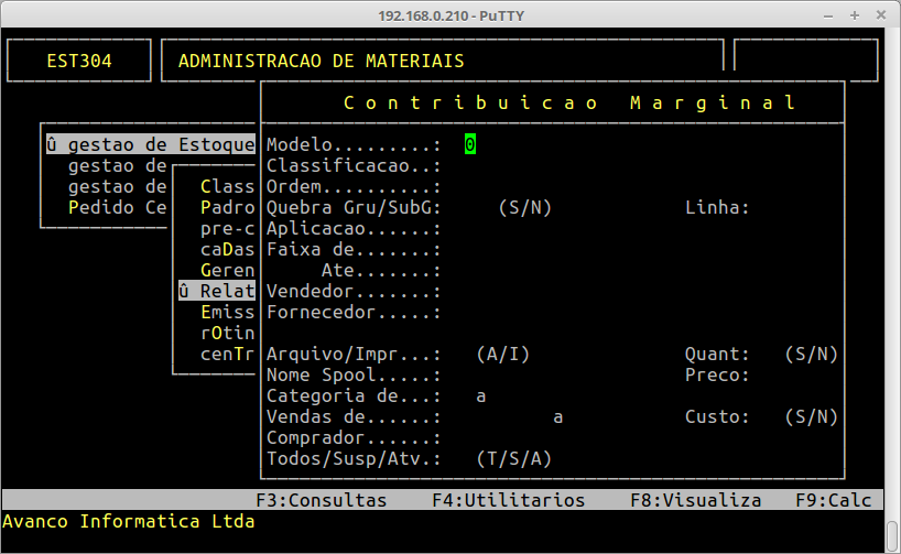 | Localização: | Administração de Materiais / Gestão de Estoque / Relatórios Gerenciais / Contribuição Marginal |