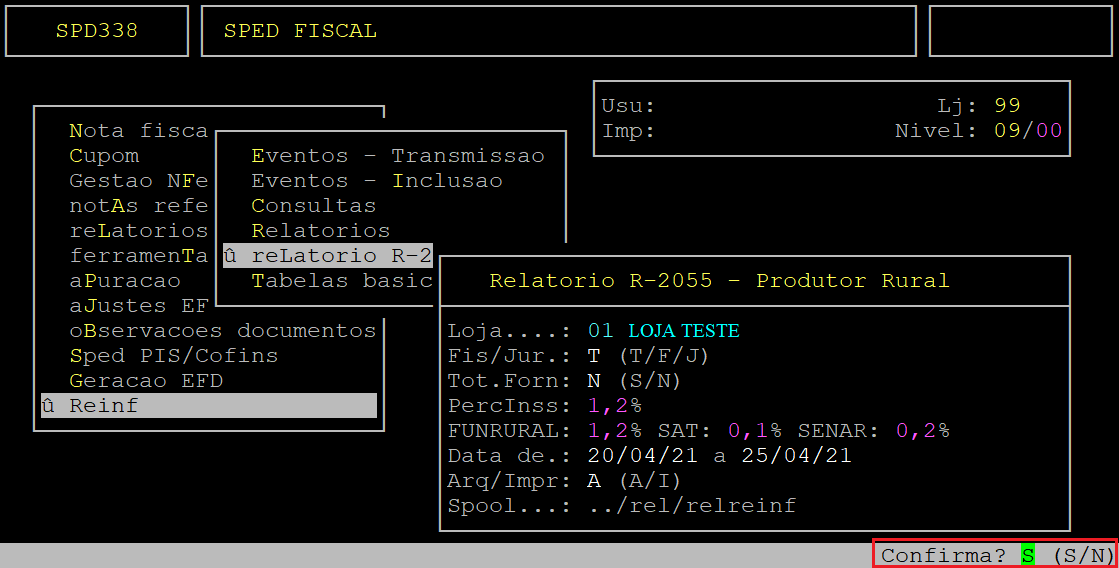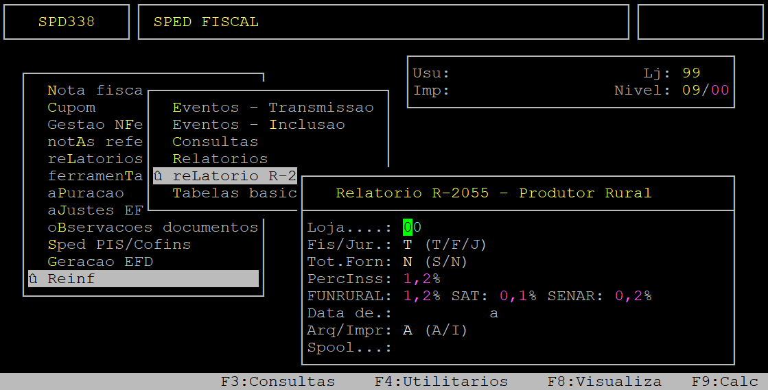 | Rotina: | Relatorio R-2055 - Produtor Rural |