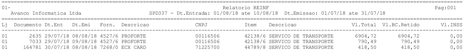 1 - Emitindo o Relatório das Notas de Serviço de Entrada com as Informações do REINF