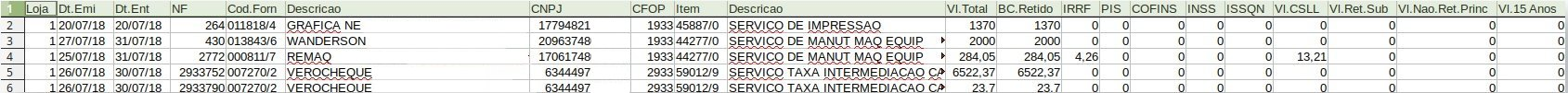 Exemplo Relatório por Data de Entrada e de Emissão em CSV