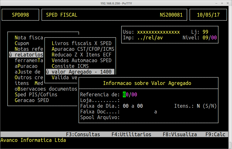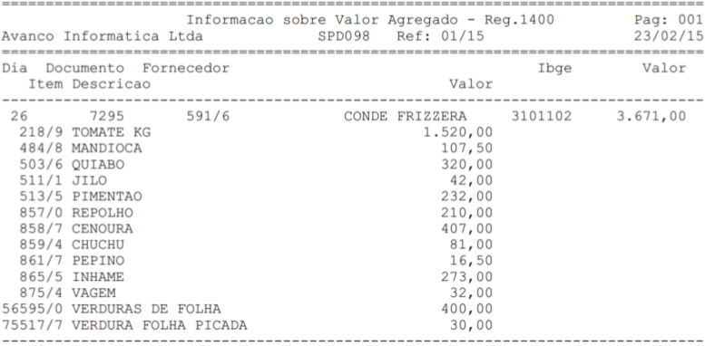 | Localização: | SPED - EFD / Relatórios / Valor Agregado - 1400 |