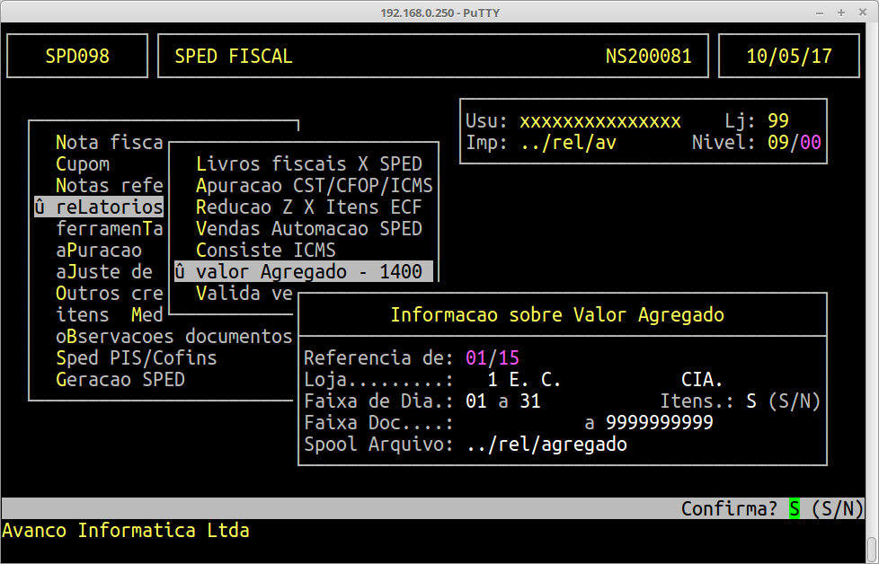 | Rotina: | Informação sobre Valor Agregado |