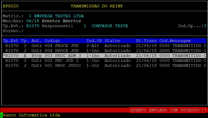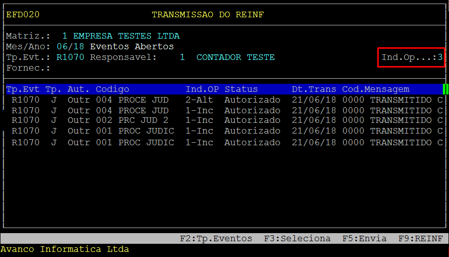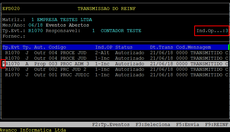 Em seguida, pressione a tecla F3:Seleciona, para selecionar o evento a ser enviado, esse será marcado com um ( * ).