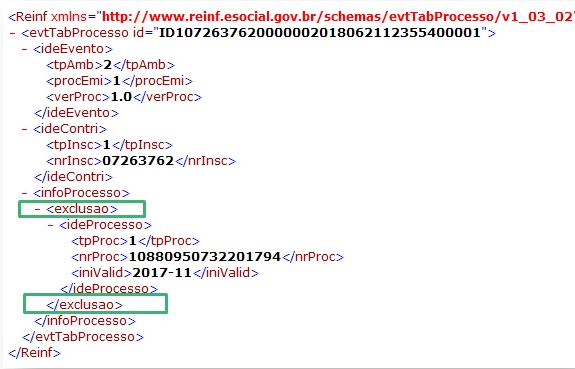 1 - Excluindo Evento R-1070 - Processos Administrativos ou Judiciais