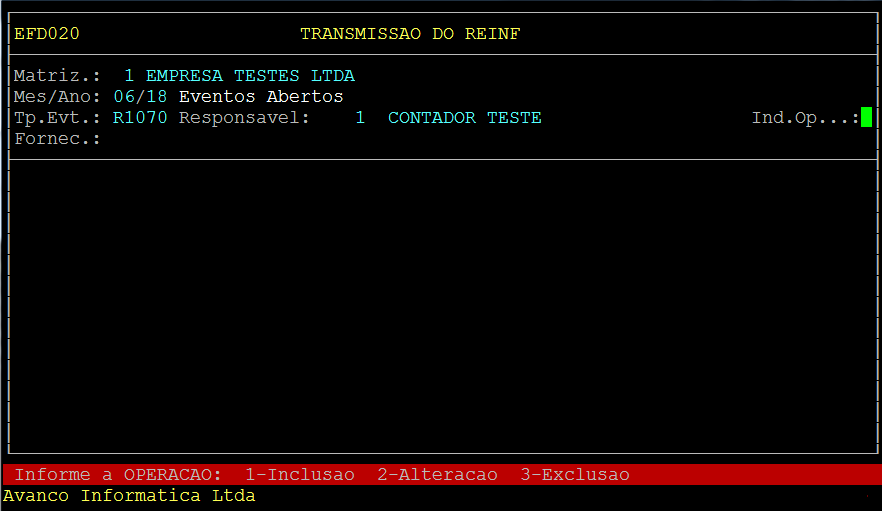 Rotina: | Transmissão do REINF |