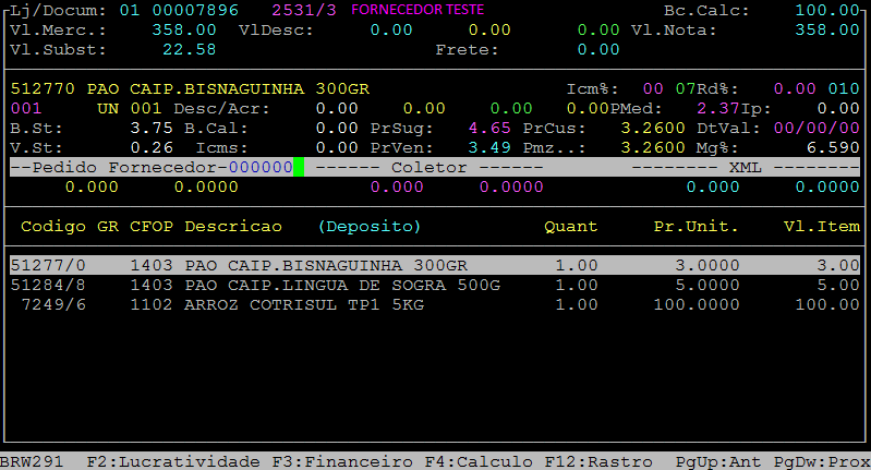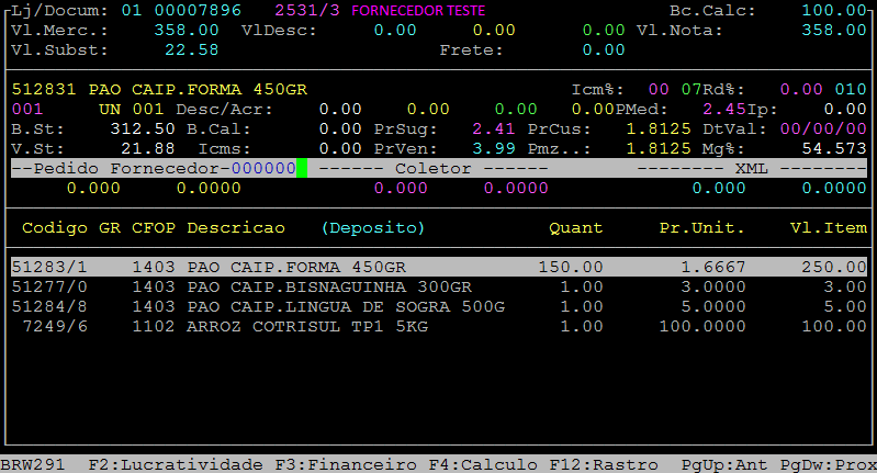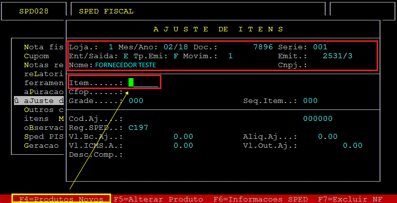 Quando determinado item é ajustado, ao utilizar novamente a tecla F4 (Produtos Novos) será exibido os demais itens da nota que ainda não tiveram ajustes.