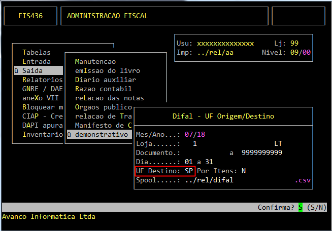 | Localização: | Administração Fiscal / Saída / Demonstrativo dif.Aliq |
