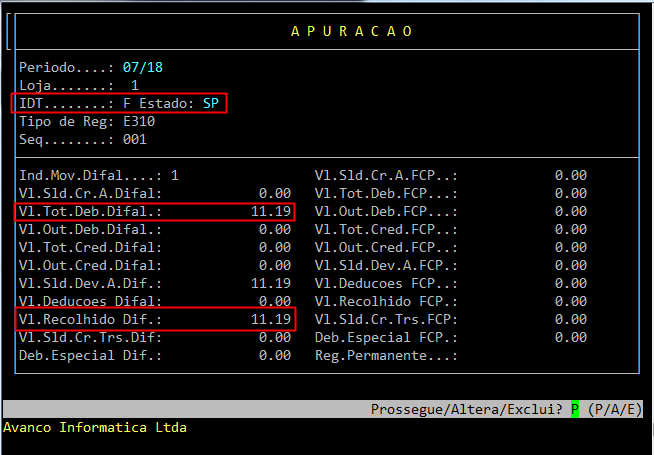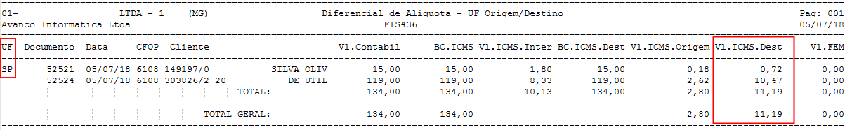 Abaixo, podemos ver a soma total do Vl.ICMS.Dest por UF. Esse valor será enviado no Registro E316 quando gerar o arquivo SPED Fiscal.