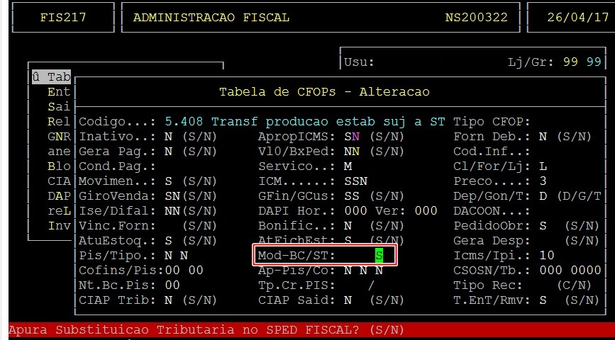 Acesse a localização citada acima, no campo Apura ST, pressione a tecla S.