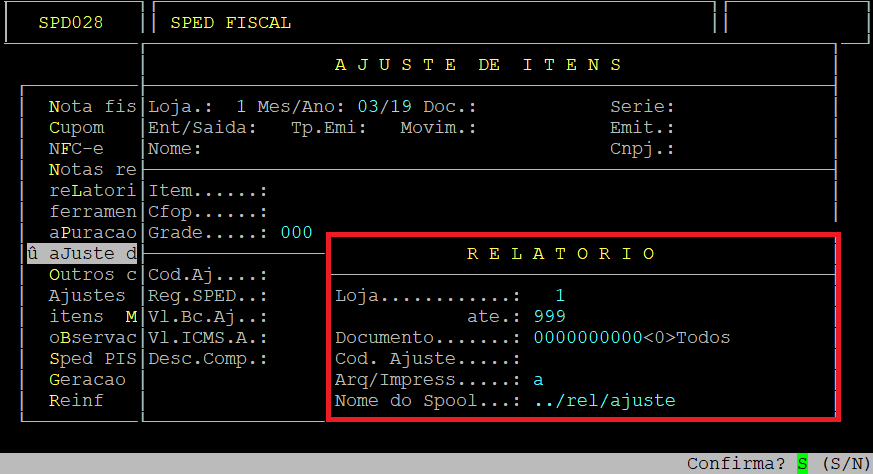 Abaixo segue um exemplo da emissão do relatório de Ajuste de Itens.