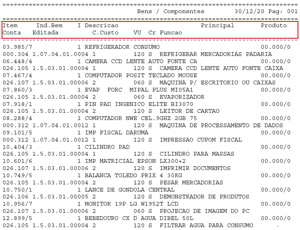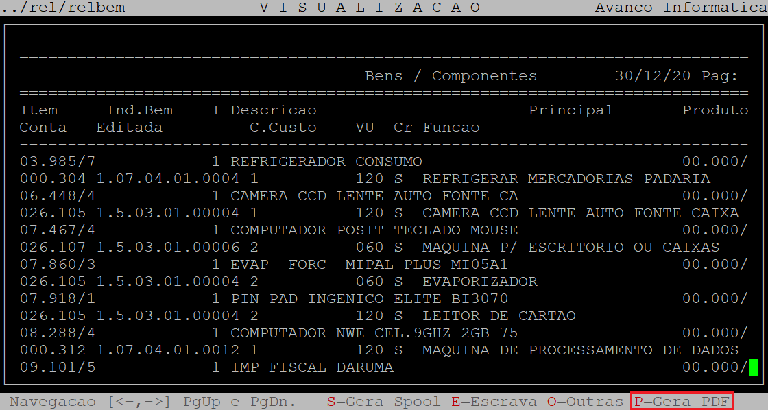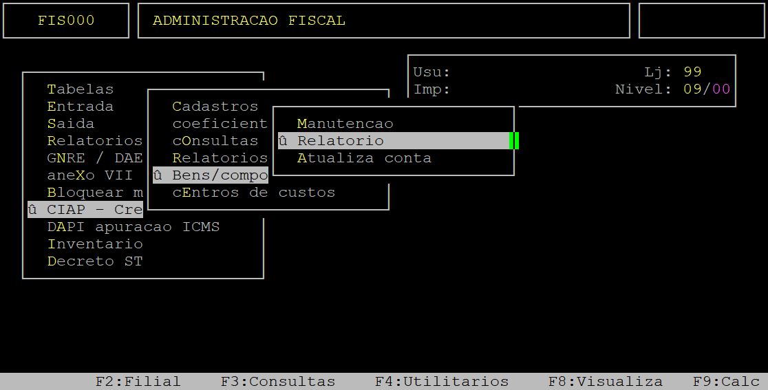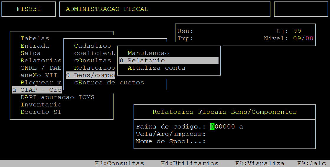 | Localização: | Administracao Fiscal / CIAP - Creditos ICMS / Bens - Componentes / Relatorio |
