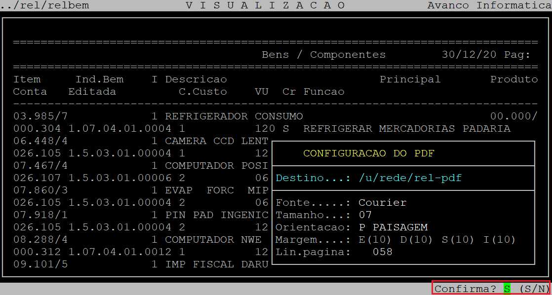 Se desejar visualizar em pdf, em seguida deverá pressionar a tecla P e depois a tecla Enter até confirmar.