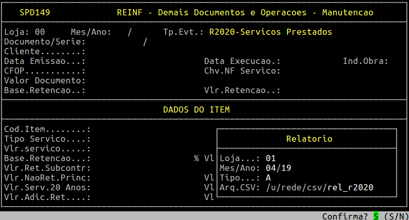 Assim que preencher os campos acima, pressione a tecla Enter ou S para confirmar e gerar o relatório.