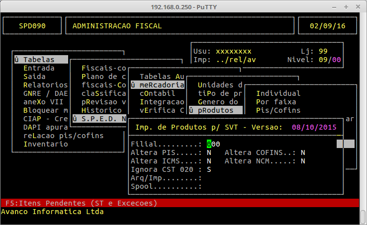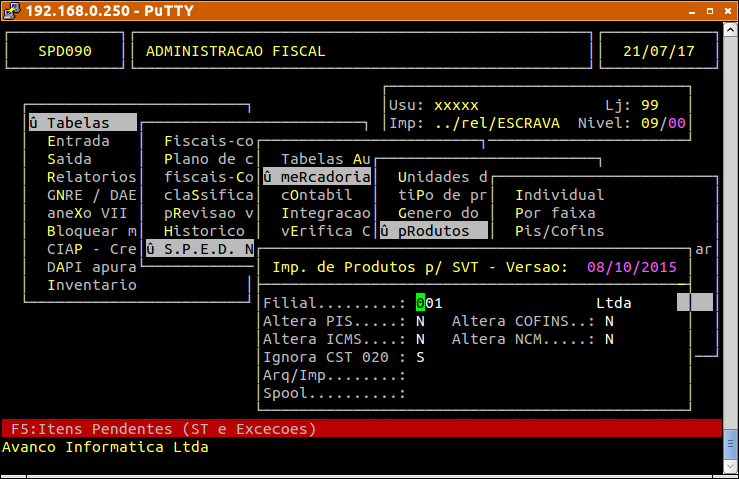 Para visualizar os itens pendentes o usuário deverá acessar a rotina de Importação do arquivo SVT novamente e em seguida pressionar a tecla F5: