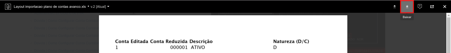 Observação: Realize o download do modelo no link a seguir: Layout importacao plano de contas avanco.xls