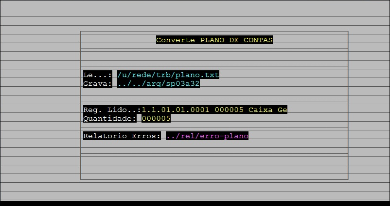 Observação: Antes da importação é aconselhavel realizar o backup do arquivo u/arq/sp03a32* referente ao Plano de Contas Contábil.