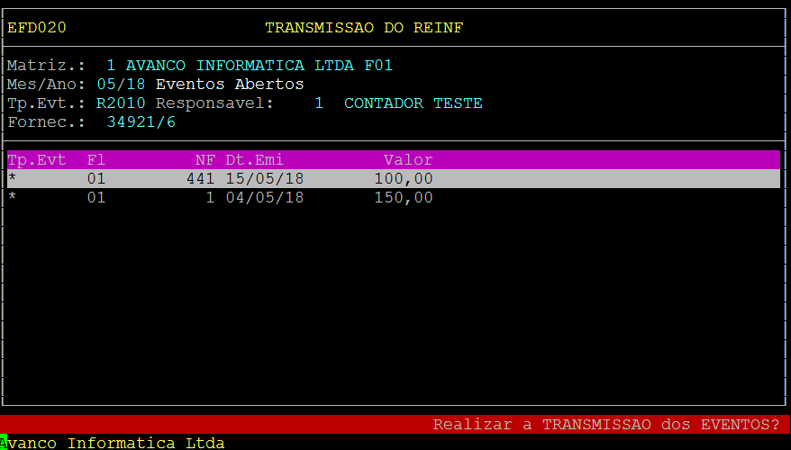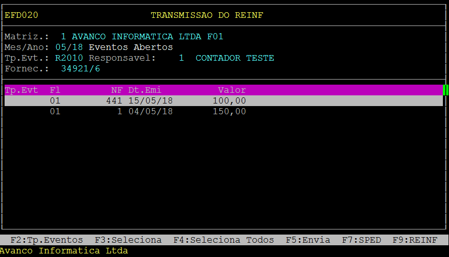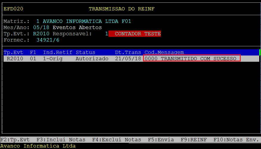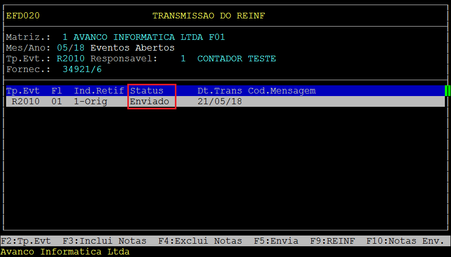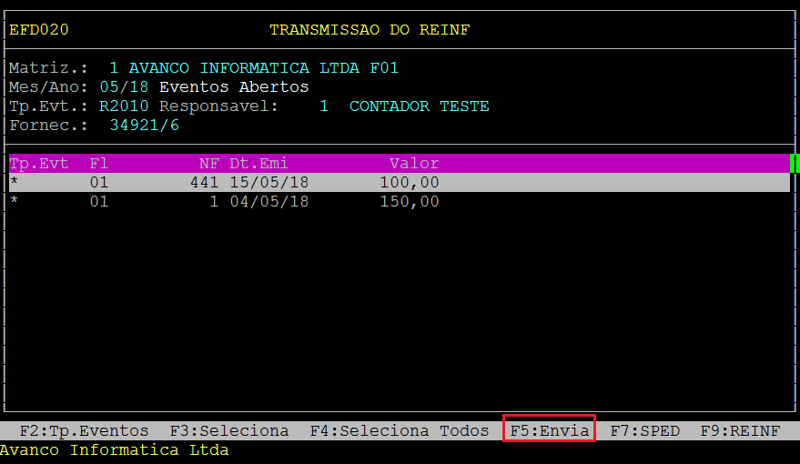 Em seguida pressione a Função "F5:Envia", conforme a imagem a seguir.