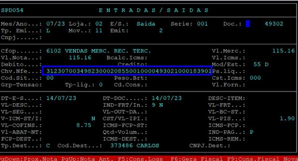 A nota se encontra com chave de retorno na consulta do SPED no sistema Integral