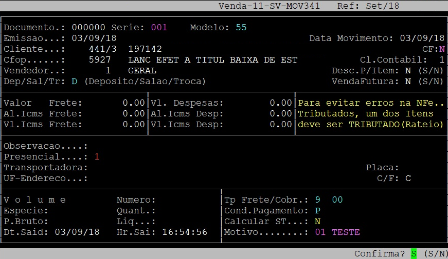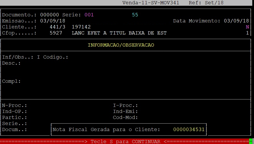 Após informado, pressione ESC para encerrar a emissão da Nota Fiscal.