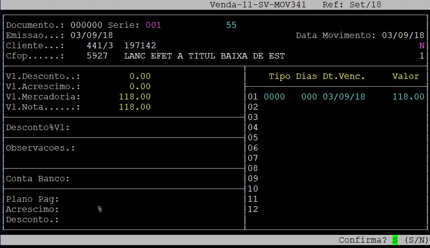 Na tela inicial preencha as informações necessárias como Cliente, CFOP, dentre outros e logo em seguida pressione Enter para confirmar.